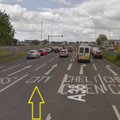McDonalds/BP Garage roundabout, leave 2nd exit straight over heading towards the city. Straight accross the next roundabout and go past ASDA Quedgeley